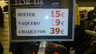 Tarde de sábado, desgana, vista cansada (tras solazarnos en la lectura) y frío en la calle: el departamento se da un garbeo por una superficie comercial que cuida mucho las formas y el producto, pero poco la ortografía en sus rótulos. Así, además las tildes que no están (pantalón, sábana, bebé, mamá, suéter, térmicas...), encontramos algún galicismo que, aunque admitido -"Descuento a realizar"- no termina de sonarnos bien; sumémosle a ello la tradicional ausencia de tildes en las mayúsculas, por cierto.